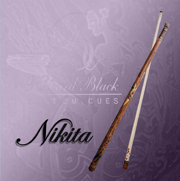 The "Nikita" project began in 2012 when Roberto Pozzo contacted Richard Black to custom craft a very personalized cue for one his good friends. In November 2012, design details were initiated with Roberto making a trip to Blackwood, Richard's home and botanical estate just north of Houston, Texas, USA.