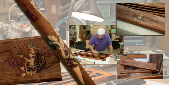 Roberto decided he wanted the custom cue to be inspired by a sand painting he owned. Detailed photos were provided of that painting to Richard. They agreed upon a final design and the project was launched.