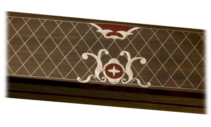 This creatively designed cue has over six hundred inlays of silver, ivory and various hardwoods depicting the many beautiful aspects of that page in musical history. It is the only time Richard made the cap protector for the butt before he made the cue.