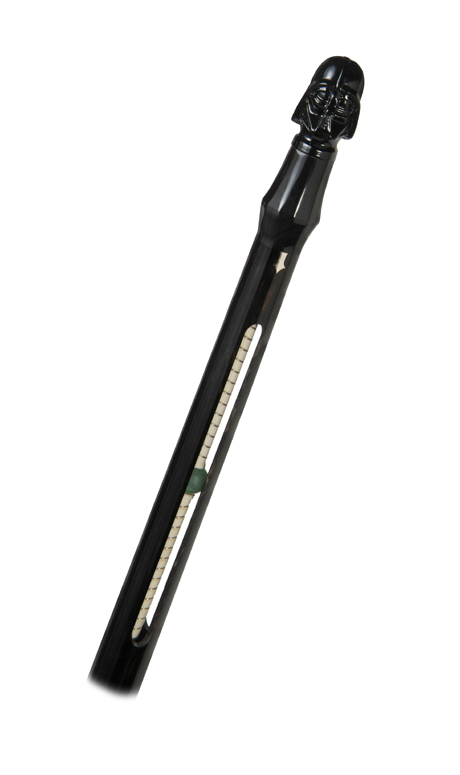 The ivory spirals (in the negative space of the nose) are to represent good and bad Force. The fact that this is all shown in negative space shows that the Force is with you beneath the surface of all things apparent. (This all had to be assembled in the cue blind.)